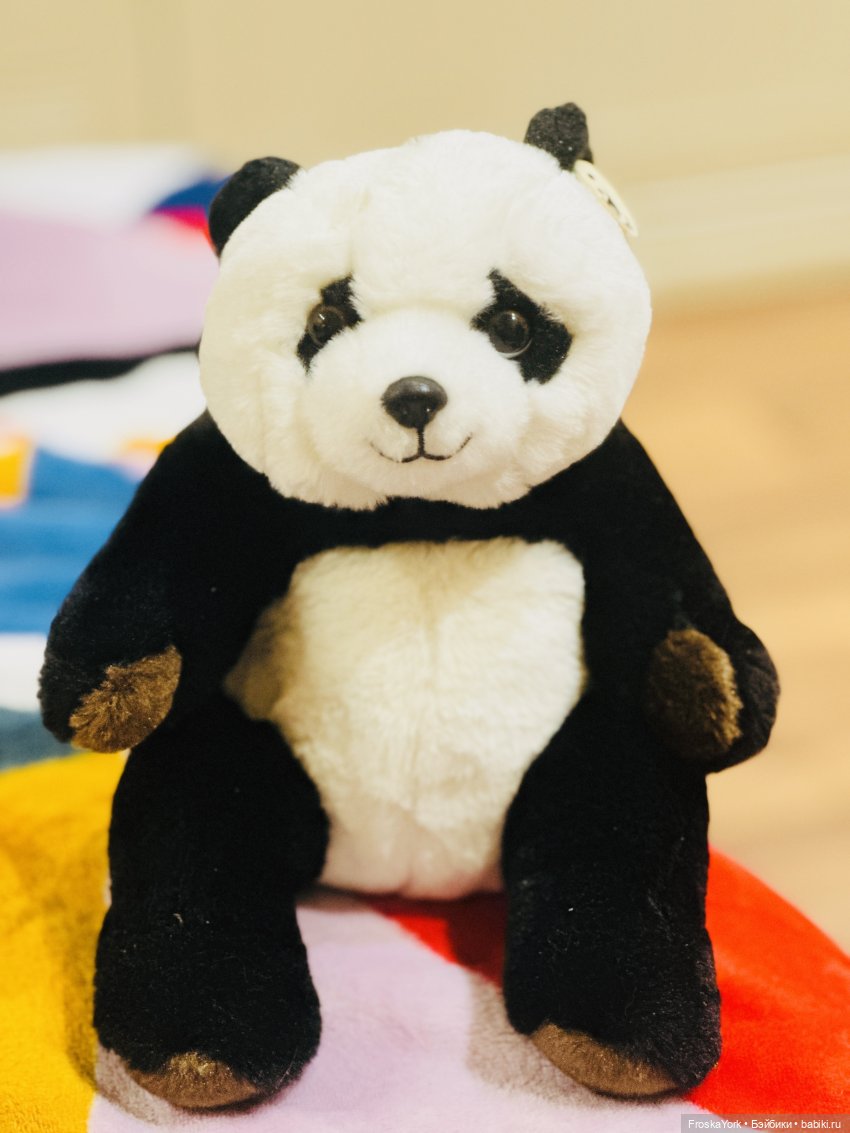 Доброго времени суток, уважаемые Бэйбики! После приезда Розочки стала я читать-смотреть все топики с мишками. И вот результат — ко мне сегодня приехала мишка-девочка пандочка. Рост сидя 23 см. В подарок продавец положил наклейки с Винни-Пухом.