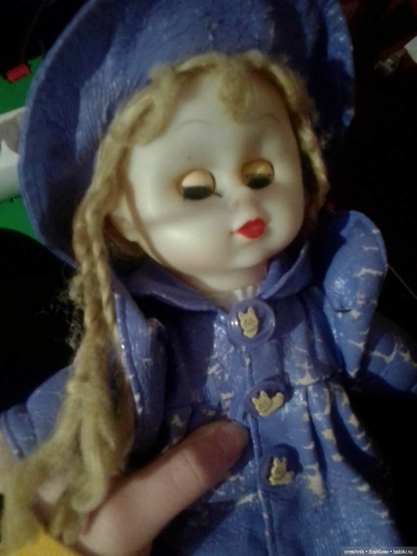Я сейчас достала её из шкафа, чтобы сделать фото, а она у меня в руках захныкала и заплакала прям… Не знаю как, ведь спокойно лежала, но глаза скрепят теперь при закрытии, раскрытии как хныканье, а в голове явно катается какая-то деталька… Жалко, люблю эту малышку