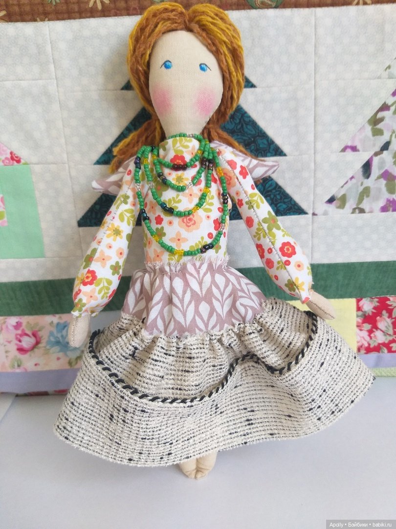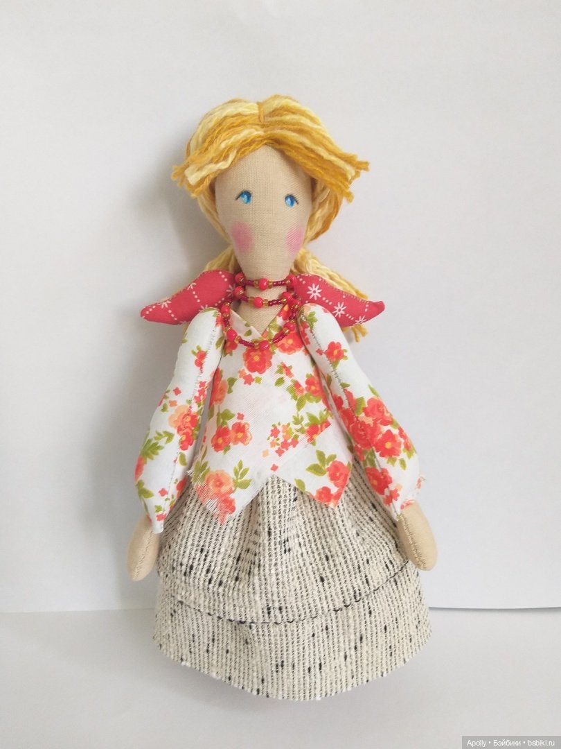 Я уже знаю, что буду участвовать в ярмарке в августе, и мне хотелось бы, чтобы на ней была такая куколка. Но полные повторы я не люблю делать и выполняю их только на заказ. Поэтому я решила создать куколку с похожими мотивами в образе, но немного другую.