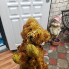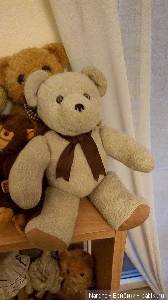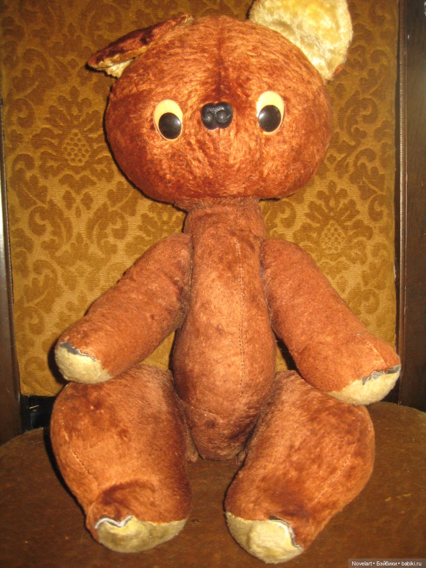 Был, помню, такой мишка из жёлтого плюша с твёрдой головой, любимый, рычал даже. Выпуска 60-х.