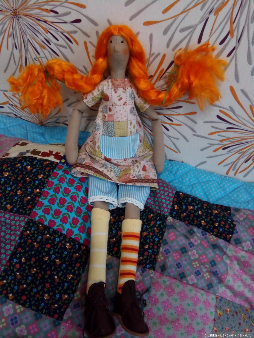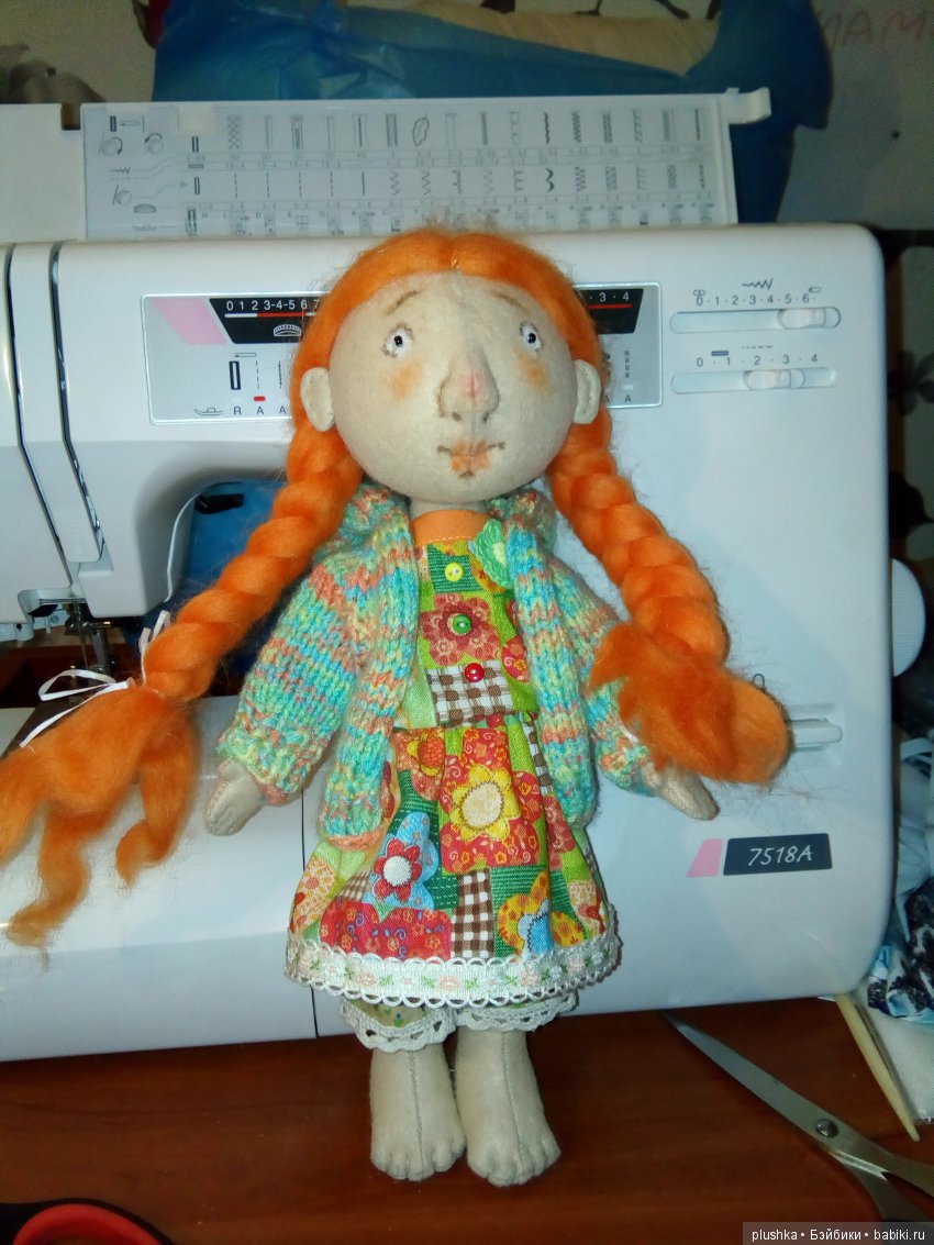 тополиный пухсинтепух круглый год летает по дому, и поначалу получается кой-как-наперекосяк, а потом со временем начинает получаться вот такая милота, и к валяющимся по всему дому ниткам и лоскуткам как-то привыкается, зато творческое вдохновение делает человека светящимся от радости, так что сияйте и вдохновляйте, всяческих творческих успехов вам!Извините, что без здрассте, я — Катя). Кинжала-минжала в детстве у меня не было, но зато была рогатка и младший брат-нюня. Как в известном фильме: мой папа хотел мальчика, а родилась я))) Играла я основном в подвалы-сараи-деревья и аэродром (мой папа — военный летчик, жили мы в начале-середине 80-х в маленьком военном городке в Брянской области). После рождения моего брата папа передумал и назначил меня девочкой, но было уже поздно. Кукол у меня было преизрядно, и все ГДРочки (мама часами давилась в очередях в «Лейпциге», чтобы добыть мне очередную красавицу, когда мы проездом бывали в Москве в отпуск-из отпуска). Максимум, на что меня хватало — достать мешок с бабушкиными лоскутками (бабушка — профессиональная портниха) и изобразить какой-нить наряд. Потом все надо было размотать и сложить обратно (резать и шить из них было нельзя, бабушка же на заказ шила, вдруг пригодится)) От девочковых уроков труда в школе меня воротило, поэтому все, что я там творила, безусловно относится к фиглям и миглям)) Одна фигля до сих пор висит у родителей на кухне — сколиозное панно из спичек с букетом, вырезанным из открытки (только в этом году до меня доперло, что надо было спички клеить валетиком))). Но вот когда случались уроки в столярной мастерской — для меня это был праздник. Папа ходил в трауре. Примерно до моих 33 лет. Потом меня прорвало — вязание, шитье, декупаж, а теперь еще и куклы. Но до сих пор все шитое-вязаное, что выходит из моих рук, не доживает даже до фото. У меня черный пояс по роспуску и распарыванию))) Зато я нюхаю и слышу хорошо ))) А также виртуозно крашу заборы и делаю деревянные ящики для дачи))) Когда-нибудь я соберусь с духом и тоже покажу все свои мигли, которые по тем или иным причинам не перекочевали прямиком веселить бомжей.