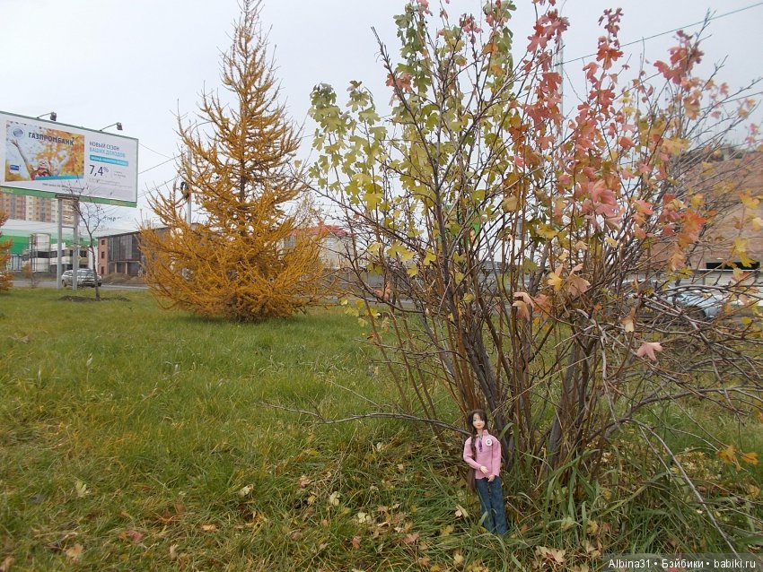 Интересные кустики, вроде в одной лунке, в одном временном пространстве, а вот один совсем молодой-зелёный, а другой по сезону «одет». Феномен почти как с рябинками, где они рядом, а цвет листвы немного отличался