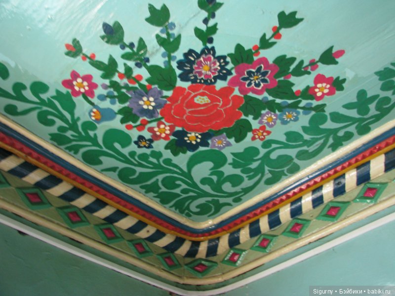 Надписи на доме гласят: «Летите голуби, летите. Для вас нигде преграды нет»; «Пусть всегда будет солнце. Пусть всегда будет небо»; «Пусть всегда будет мама, пусть всегда будет мир». Цифры под коньком свидетельствуют о дате начала работ – 1954 год. А выше пояснение, что работа начата в 1954 году, а закончена – в 1967 году – в канун 50-летия революции. Все украшения сделаны из дерева и металла.
