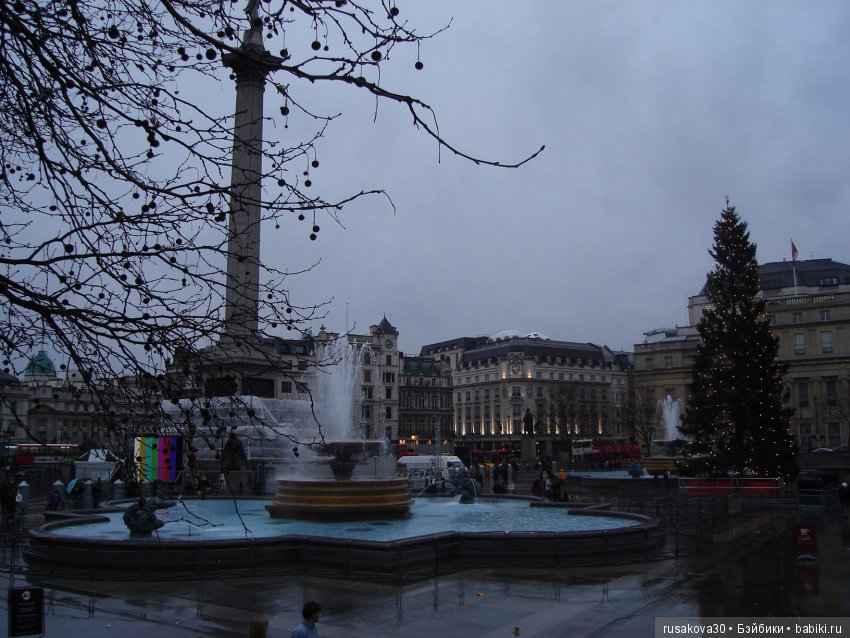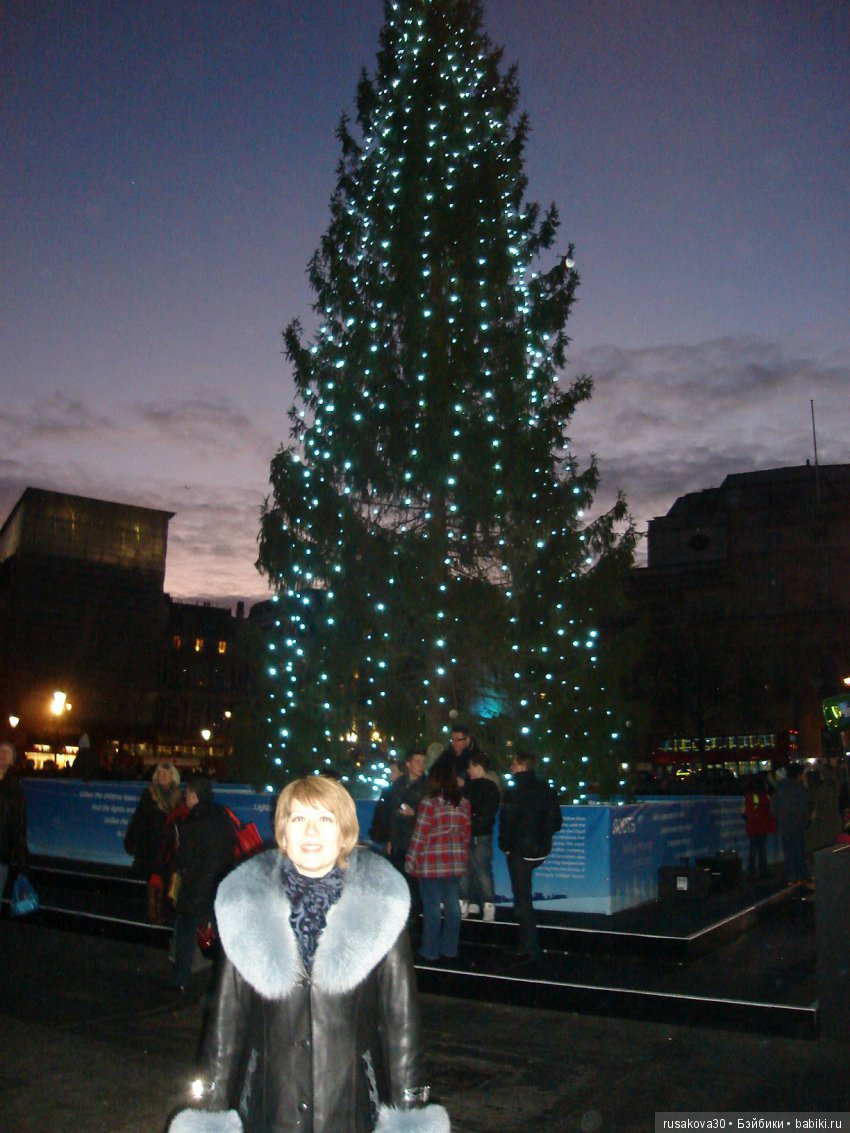 Это первая английская елка, которая потрясла меня. В первый год жизни в Англии я упросила мужа отвезти меня в Лондон на Трафальгарскую площадь.Уж очень мне хотелось посмотреть главную елочку Англии.Муж сразу же меня предупредил — елка скучная.Я не поверила.Вот мои фото главной елки Англии.