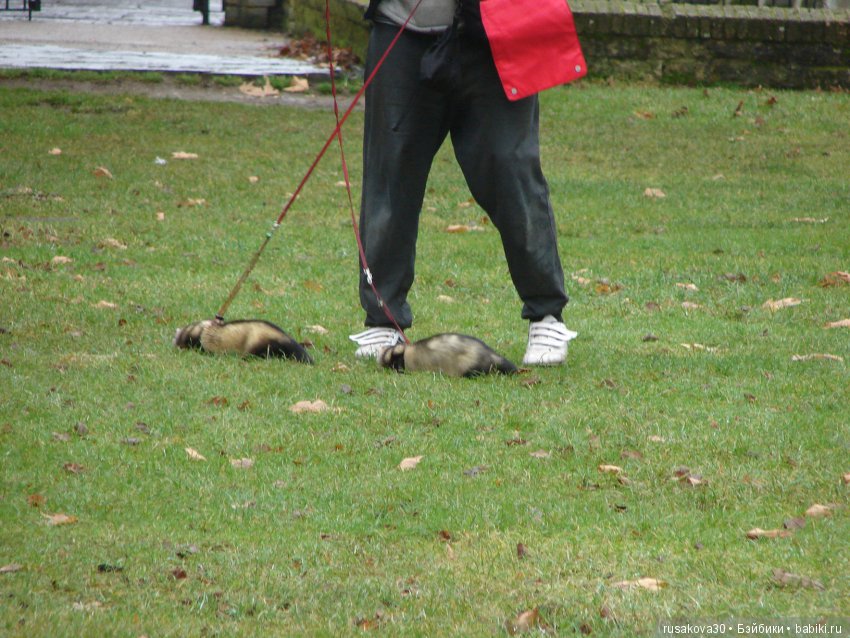 Недалеко от собора мужчина прогуливал хорьков. Они так смешно прыгали по траве и очень быстро карабкались на мужчину, если подходил кто-то чужой.