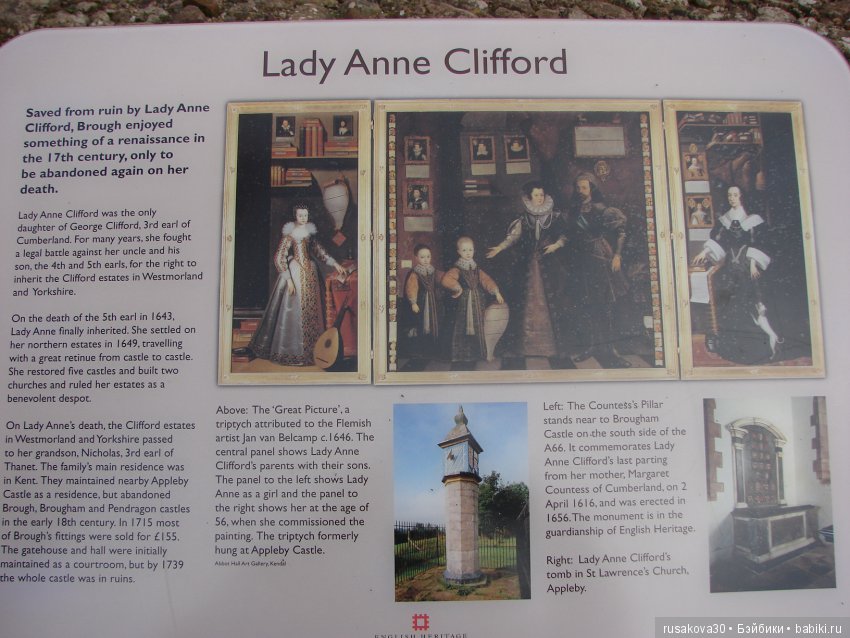 Леди Анна Клиффорд (1590 — 1676), графиня Дорсет и позже герцогиня Пемброк является одной из самых заметных фигур в Великобритании XVII века. Одним из самых значительных поступков леди Анны, снискавшим ей славу «протофеминистки» называют ее попытки добиться права наследования по женской линии от своего отца, Джорджа Клиффорда, третьего графа Камберленда.