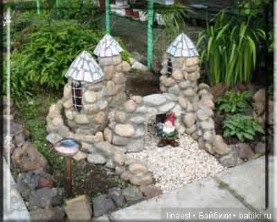 — вы можете себе такой около дома сделать, с фонтанчиком и скамейкой)