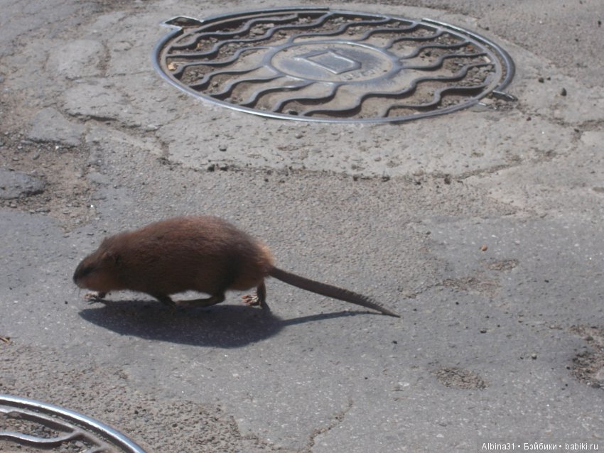 Упс! А это что за зверушка гуляет?.. А, ондатра, спокойно шныряет по улице и ноль внимания на окружающих :)