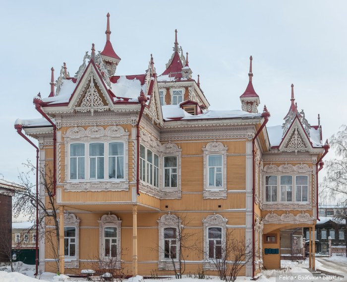 Башенки с элегантными завершениями и сочной резьбой по дереву.Памятник деревянного зодчества!!!