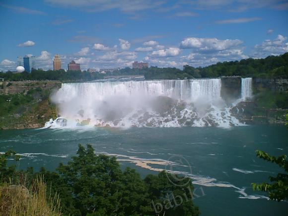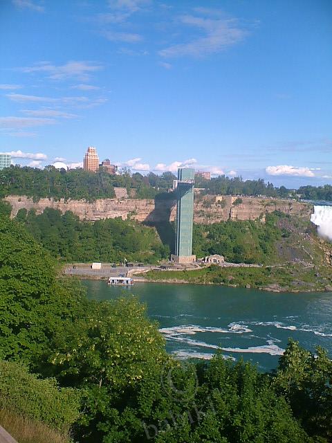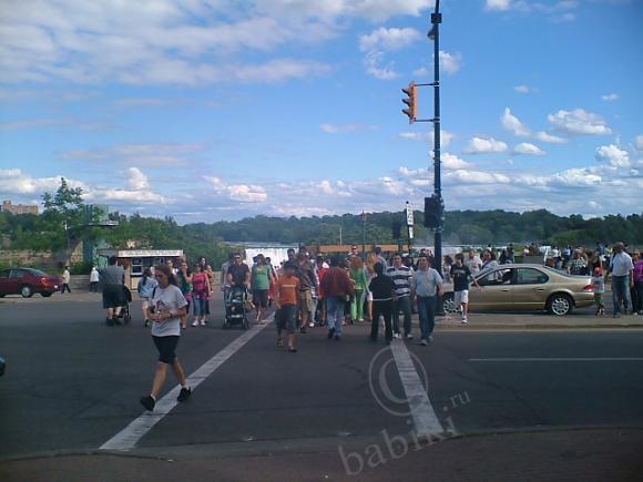 Да, наши водопады — это чудо. Тот, что полукруглй чашей — канадский, а тот, что на левом берегу реки — американский. Граница проходит по мосту через Ниагару — он слева остался. Вышка на левом берегу — смотровая. Там и фуникулёр есть. Теплоходики плавают в территриальных водах, метров за сто друг от друга. Их пассажиры нам машут руками, а мы — им.
