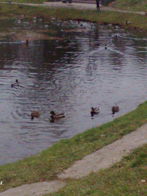 Еще у нас есть озеро, там плавают лебеди и утки.Любимое занятие детей-кормить их.