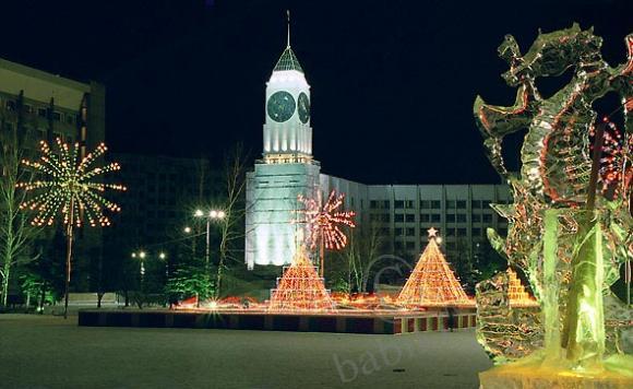 Площадь перед театром оперы и балета, часы на администрации города