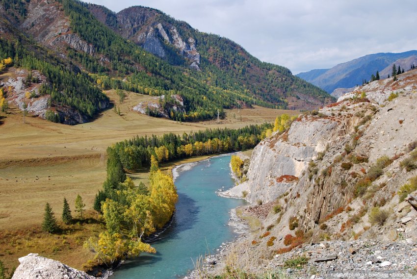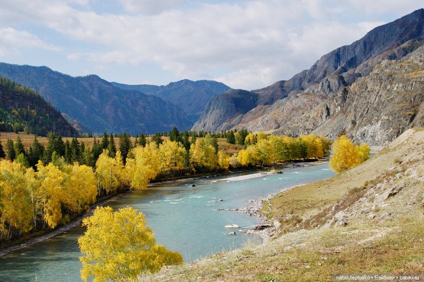 И вот она-красавица Катунь. У нее зеленоватый цвет воды-что удивительно для этого времени.