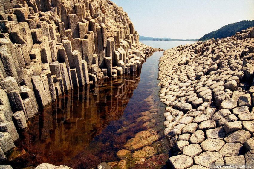 Базальтовые столбы мыс Столбчатый Южные Курилы.