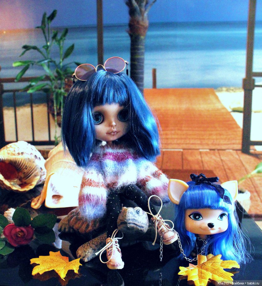 А вот кофта на ней именно для собачки связана, но мерили на кошечку, коту она совсем не налезала)))