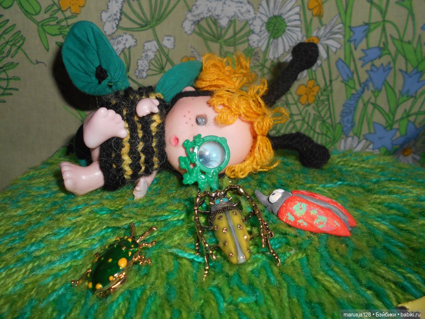 А теперь покажу самое интересное. Из разряда пока не достижимого. Мастерица, связавшая совок делает мух. Больших, крылатых и усатых, тоже вязаных. Как именно она их связала, буду разбираться(потому что хочу себе хоть одну такую мушищу, а на готовых цена космическая!)