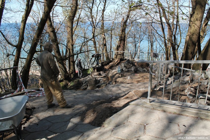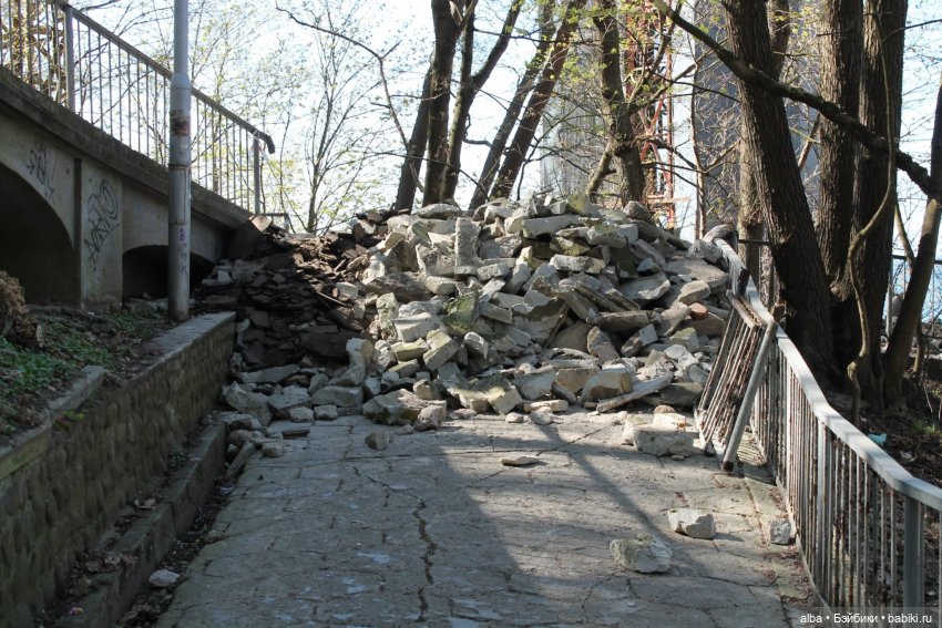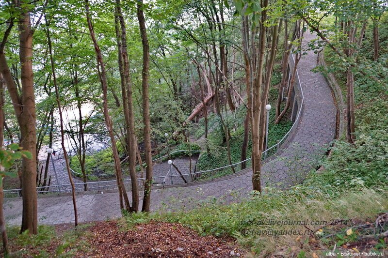Когда-то это был оживленный курорт, населенный гостями, живой и музыкальный, по дорожкам «живые» фонтаны с питьевой водой… трэки… стоки… вокруг ручьи кишели лососем, рыбу ловили руками… дикие коты обитали, и время от времени люди собирали полюбившихся котят, разбирали по домам… угри были не в диковинку, а едой… парки и скверы… лифт бесподобный (сгнил и рухнул) для тех, кому тяжело было спуститься к морю…