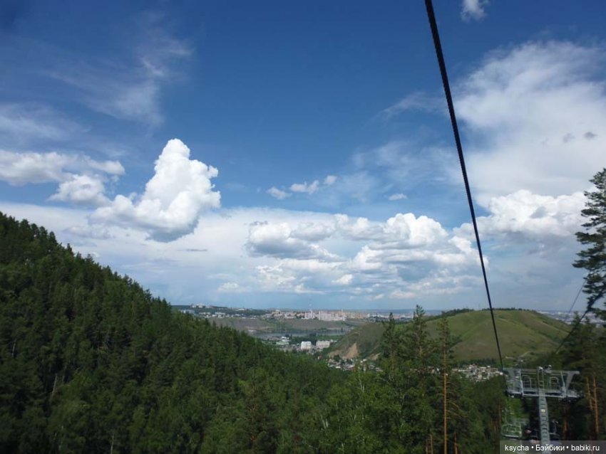 Время в пути к верхней станции составляет 5-7 минут: это полет сквозь сосново-березовый лес, где летом трава кажется бархатным ковром, а зимой открывается вид на горнолыжные трассы. Мощные бинокуляры позволяют рассмотреть окрестности Красноярска.