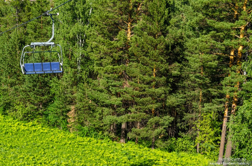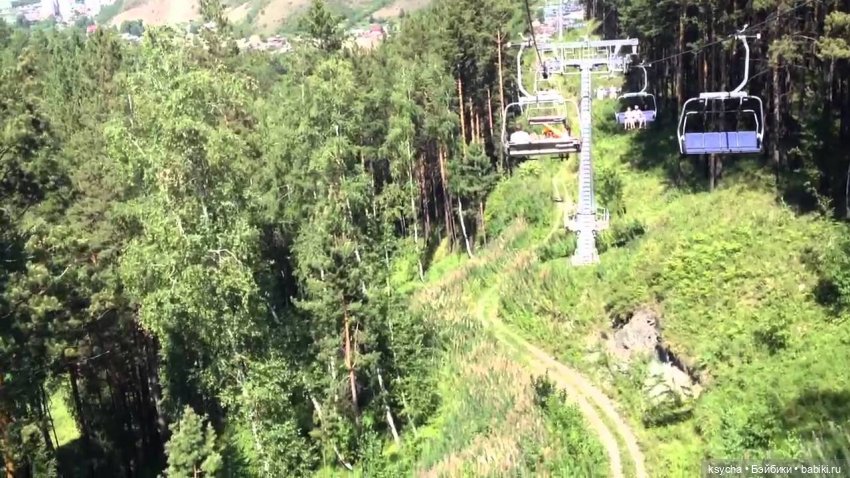 4-х местный канатно-кресельный подъемник К1 ведет на вершину склона, где со смотровой площадки открывается вид на бескрайние лесные массивы с одной стороны и Красноярск с другой.
