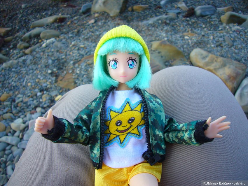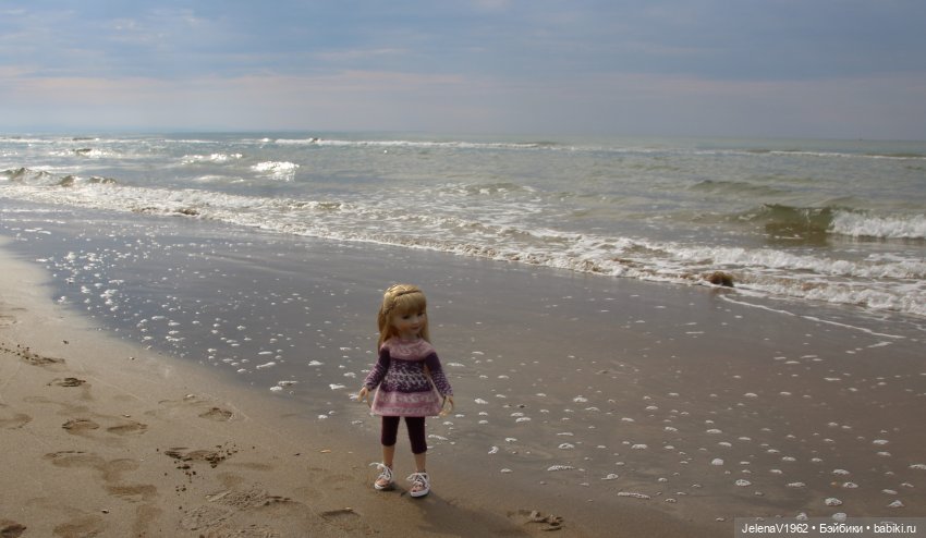 Куклы милейшие улыбашечки, радостные такие! Море прекрасно, удивительно, что люди плавают, наверное, закаляются, «моржи». А фотографии в золотых ботинках очень веселые, они сказочного дизайна.(может, волшебные сапоги-скороходы) Так приятно посмотреть на теплые денечки, а в Москве сегодня выпал снег…