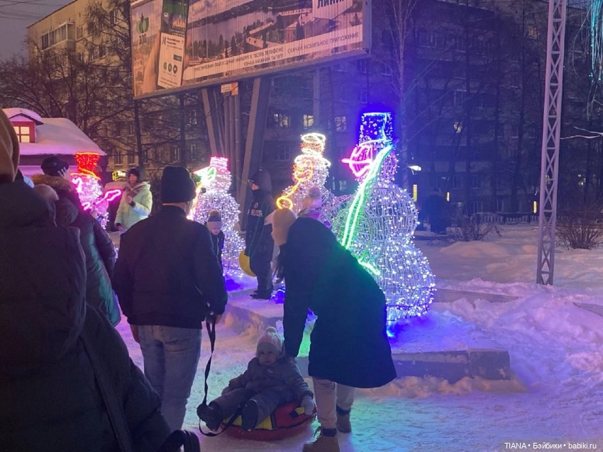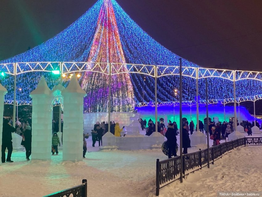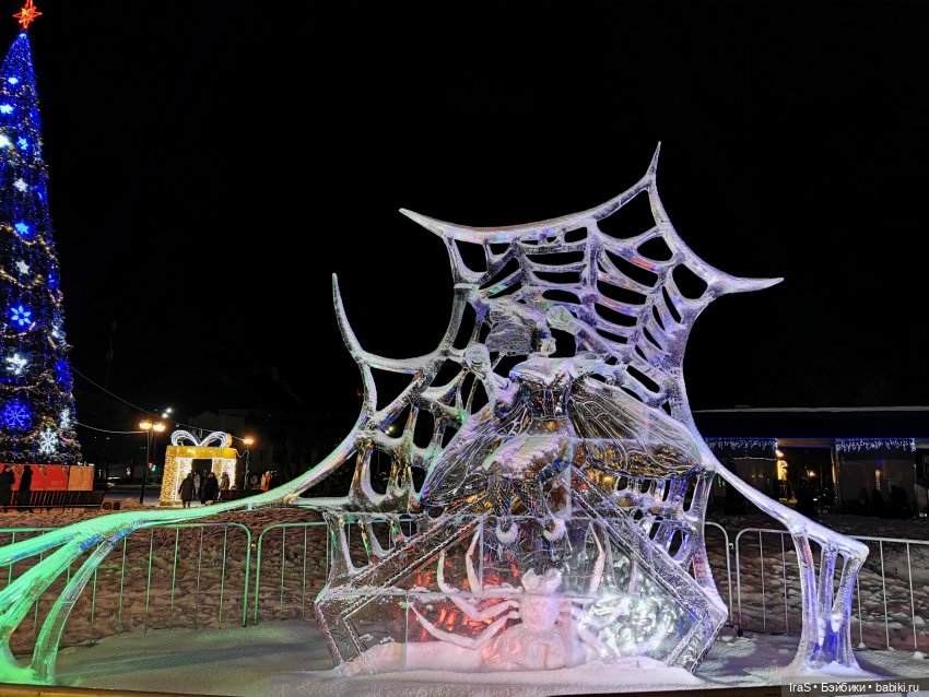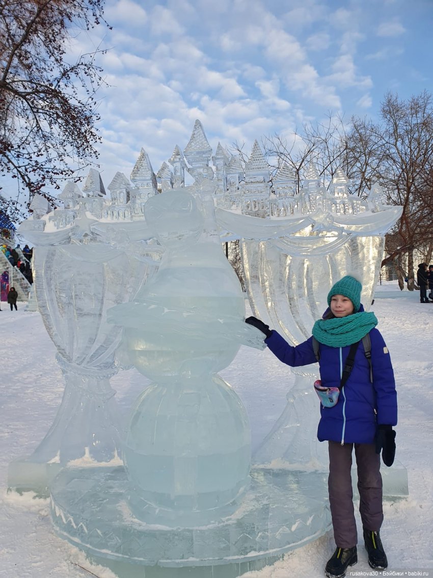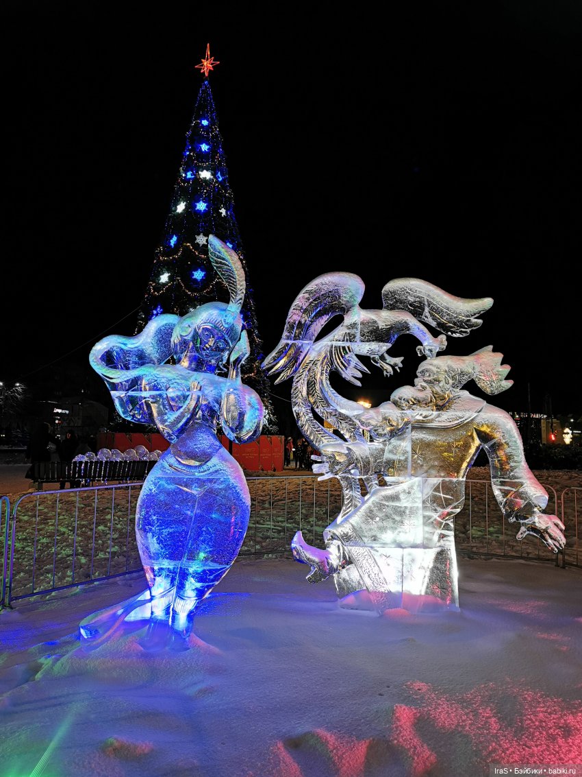 И шикарные ледяные фигуры на Михайловской набережной у Оби.
