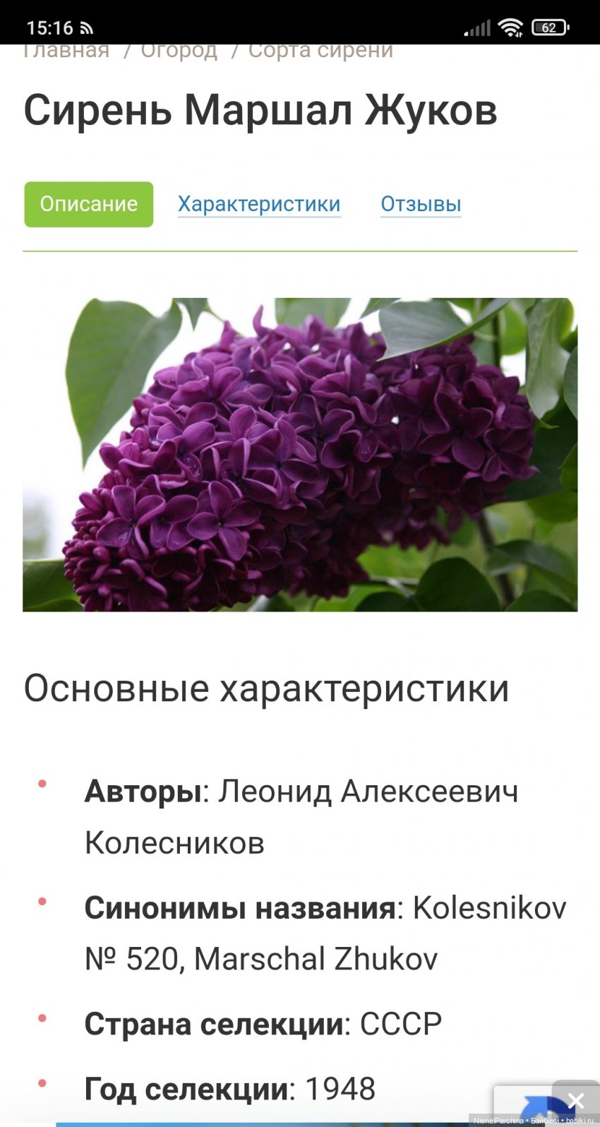 Тогда же правительство и исполком Моссовета приняли постановлении о создании опытно-селекционного питомника в Калошино, куда были перевезены вся коллекция сирени и маточники новых сортов. Директором питомника был назначен Л.А. Колесников. На базе питомника был открыт Сиреневый сад. Здесь, в Сиреневом саду, до сих пор растут сорта, имеющие статус национального достояния нашей страны.