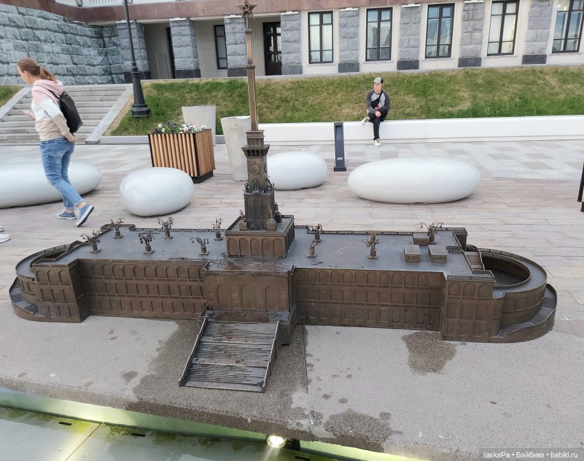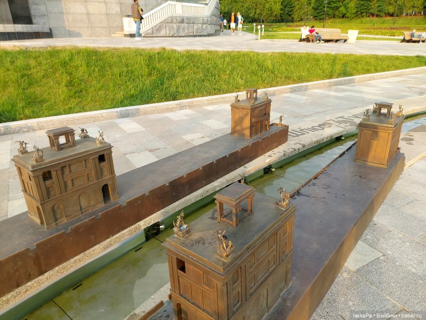 Вдоль набережной (протяженность ок. 1,5 км) тянется макет канала Волга-Москва