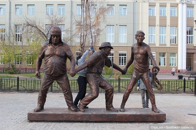 Это один памятник. Гайдай как бы снимает нашу любимую троицу 😉