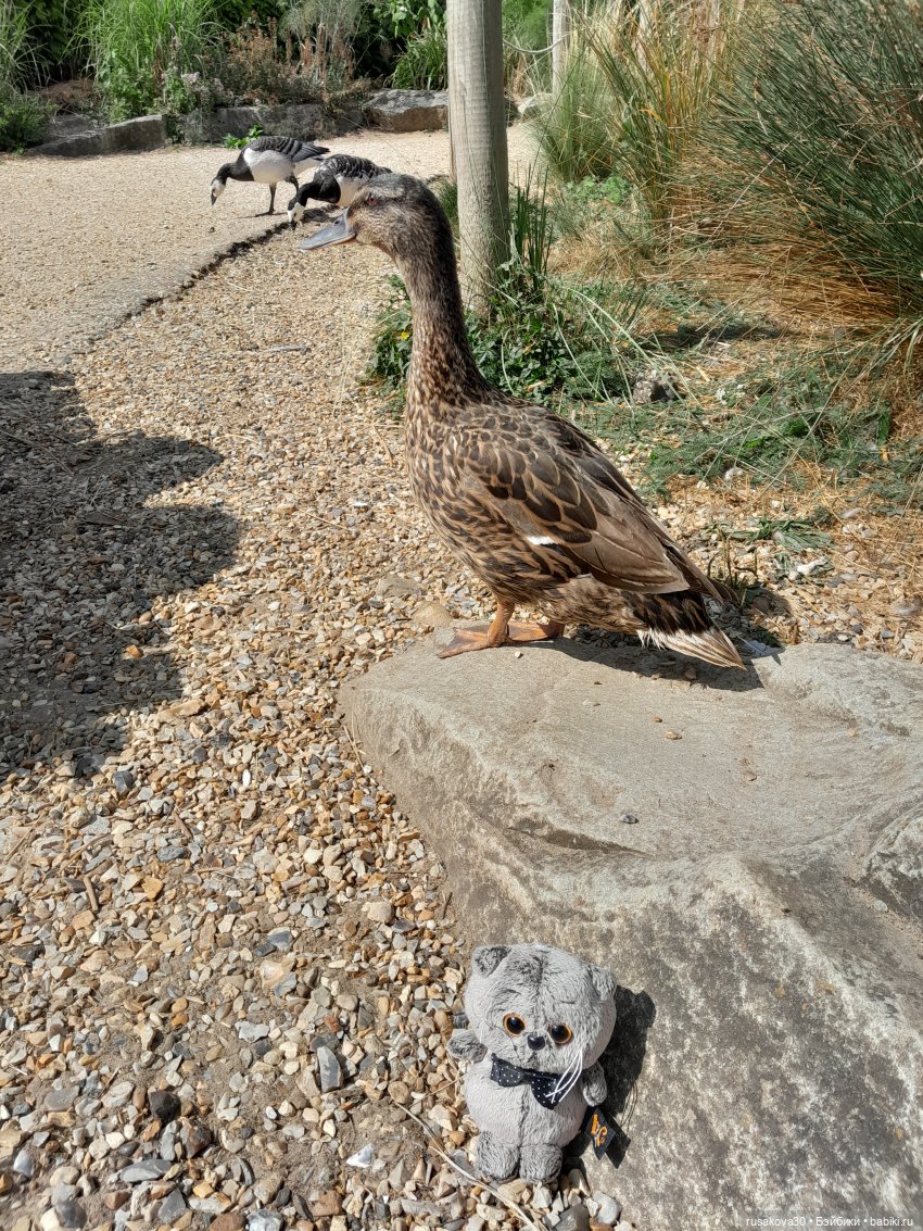 Этот зверь ( ондатра или нутрия, мы не разобрали) гулял сам по себе, по газончику вне вольера, что-то подбирал и грыз в травке. Сбежал, или так ему и положено, мы не поняли. Но забавно.
