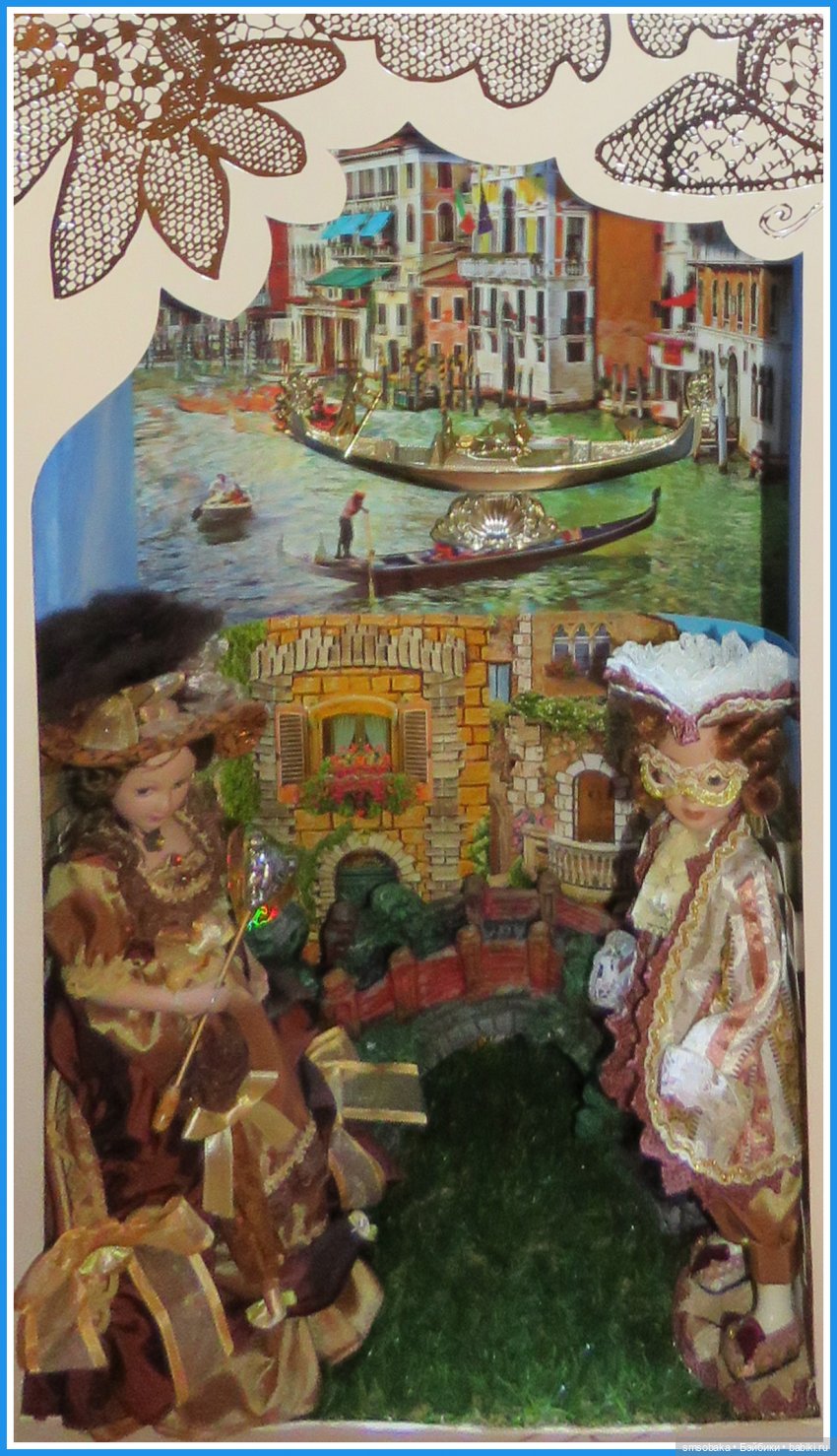 Вот эту диораму я сделала в прошлом году, а навеяла на это меня маленькая золотая (по цвету) гондола, которую я купила на площади Сан Марко.