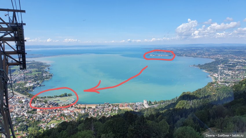 А это вид на остров Боденское озеро и остров Линдау с горы Пфендель в городе Брегенц ( Pfändler, Pfändlerbahn, Bregenz) в Австрии. Если у Вас будет шенген — то Вы так же сможете купить билет на корабль и из Линдау переплыть в Брегенц и подняться на эту гору в чудесной кабинке с потрясающими видами и так же вернуться назад — цена на билет в оба конца плюс поездка вверх на гору и вниз.