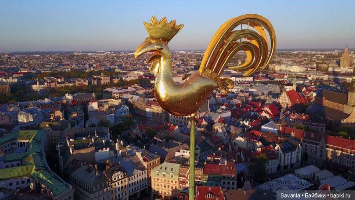 Вот на этой фотографии отлично видно шпиль церкви Святого Петра (правее) и шпиль Домского кафедрального собора (левее). Петушки на обоих (вроде бы) золотые))))