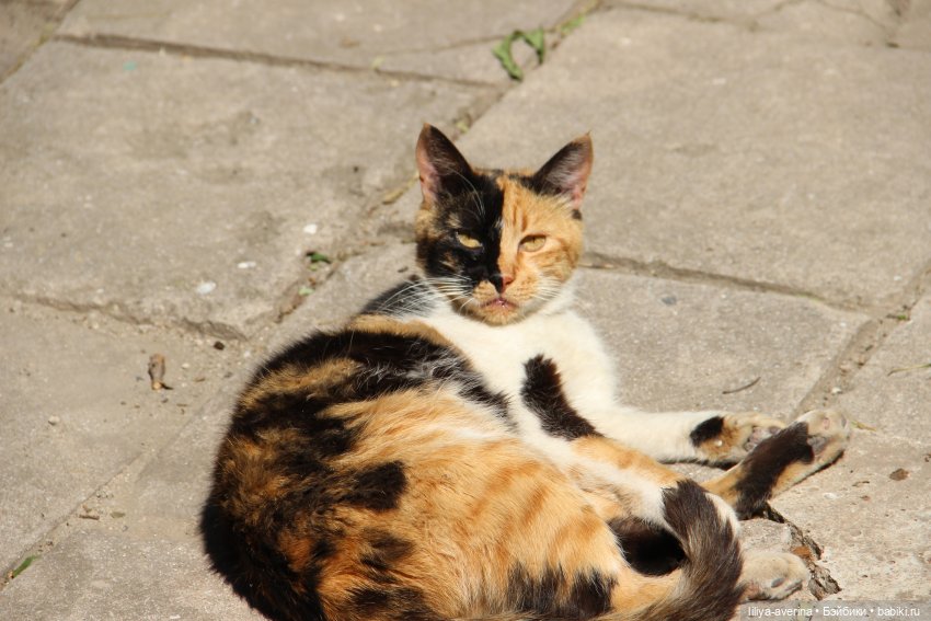 Кошки чувствуют себя хозяевами, ходят вольготно и где хотят ( по машинам, по отелям, переходят дорогу в неположенном месте и их пропускают) и в общем-то недурно живут. Я сама вижу каждое утро как одна туристка проходит по набережной со своей собакой и каждой встречной кошке насыпает горочку сухого корма )