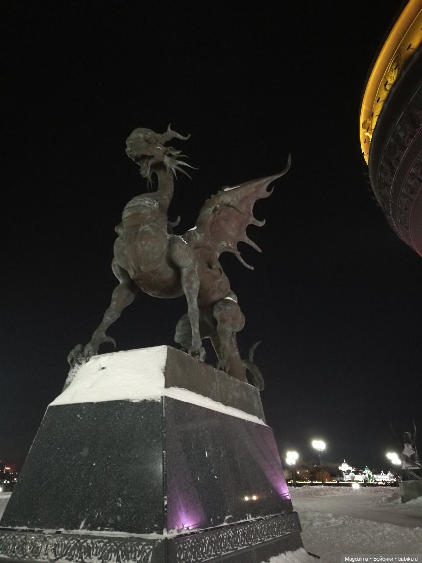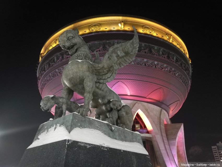 У местного ЗАГСа в форме казана. Не увидели акбарсиху с акбарсятами и зилантиху с зилантятами.