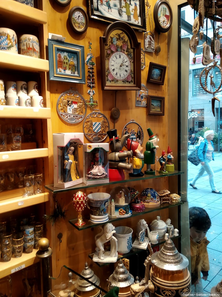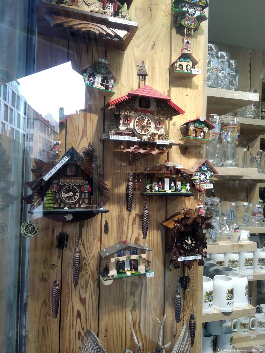 Мы снова на Мариенплатц, друзья! Посмотрев на удивительные часы на городской ратуше, мы пошли по сувенирным лавкам. И что же мы видим? Часы во всем своем многообразии.