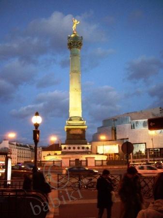 Рю де Риволи плавно перетекла в Рю Сен Антуан, а затем привела нас прямиком к площади Бастилии. По дороге мы купили очень неплохие чурросы (для тех, кто не знает, чурросы – это такие палочки, или завитушки, из жареного сладкого дрожжевого теста, довольно мягкие, не как наш хворост, и посыпаны сахарной пудрой). Вообще-то, чурросы больше характерны для Испании, поэтому мы их и купили, ностальгия одолела, с утра в Испании не были. Площадь Бастилии в тёмное время суток выглядит особенно впечатляющей из-за подсветки монументальной Июльской колонны, увенчанной статуей Гения Свободы. Не знаю, какой он, этот Гений, на самом деле, но вечером он выглядит золотым и виден издалека, так что не заблудитесь. Затем надо идти от Бастилии по правой стороне Бульвара Ришара Ленуара до пересечения с Рю Сен Сабин. Эта небольшая улочка делает поворот, вот на самом повороте вы и найдёте эту кондитерскую.