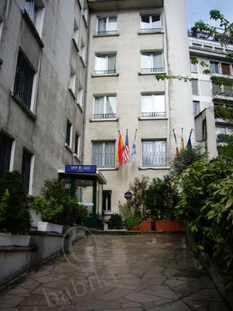 Проснувшись на следующее утро, мы на такси поехали в свой отель. Из плюсов расположения: район довольно тихий – и это в самом центре Парижа; от метро недалеко, зелени достаточно; Эйфелеву башню, конечно, видно не так хорошо, как с площади Трокадеро, но до неё всего 20 — 25 минут обычным шагом; здание Юнеско в двух шагах от отеля, улица Авеню де Сакс упирается прямо в Военную школу, за которой Марсово поле и Эйфель. И ещё, как я и говорила, для меня огромным плюсом было наличие одних положительных отзывов со стороны англичан и испанцев.