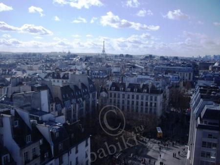 Надо сказать, что Париж в качестве подарка преподнёс нам абсолютно не соответствующую данному времени года погоду – всё время, пока мы были во Франции, с утра до вечера с переменным успехом лил дождь и шёл снег, температура от – 1 до + 7 градусов (и это после Испании, где + 26!). К счастью, дождь на какое-то время перестал, поэтому и Монмартр, и Эйфелеву башню мы, к своему огромному облегчению, сумели разглядеть. Кстати, на входе в музей расположен огромный металлический паук, и по нему с удовольствием ползают детишки.