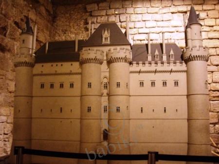 после этого спустились на нижний подземный этаж крыла Сюлли, где внимательно осмотрели старинную каменную кладку средневекового Лувра и сам макет дворца – крепости.