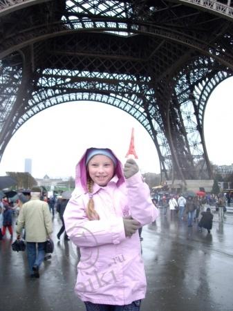 Побродив немного возле стоящих в очереди людей, мы направились к дальней левой ножке (если стоять спиной к Марсову полю). По дороге закупили сувениры для всех девочек из класса, для любимых учителей, и для всей родни. Кстати о сувенирах. Брелки в виде башенок со всеми уговорами достались нам по 1 евро за три штуки, а стеклянная башня с подсветкой – по 3 евро за штуку. Как я поняла потом, сувениры возле башни одни из самых дорогих, чуть подешевле – в лавочках у Нотр Дама, а самые дешёвые – возле Сакре Кёр.
