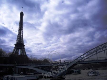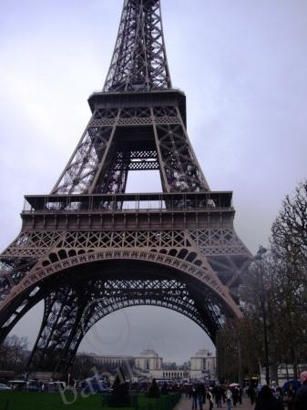 Ещё одно необычное средство передвижения также было обнаружено нами в парке на Марсовом поле. Целая группа туристов (человек 15, все разного возраста, были даже подростки) ехали стоя, каждый на своём (даже не знаю, как назвать) аппарате. Такая тумбочка с колёсами, высотой сантиметров 30, из неё торчит стойка с рулём. Так вот, люди стояли на тумбе, держась за руль, и ехали, осматривая всё вокруг. Дочь была в восторге, но можно ли на таких покататься, и где их взять, мы так и знаем. Когда идёшь от Военной школы к Эйфелевой башне, то постепенно приближаешься к этому величайшему инженерному сооружению; кружевная металлическая башня проглядывает сквозь кружевные ветки голых зимних деревьев на фоне мрачного дождливого парижского неба. Очень эффектно смотрится.