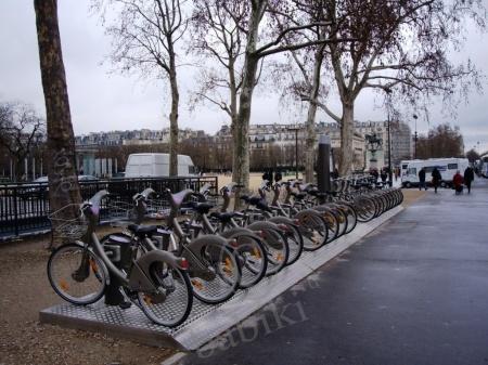 Напротив Военной школы и рядом с Марсовым полем расположена стоянка-прокат велосипедов. Все абсолютно одинаковые, приятного серого цвета, с продуктовой металлической корзинкой у руля, они прикрепляются каким-то образом к металлической стойке. Рядом на рисунке показано, каким образом можно этот велосипед взять, как оплатить и тому подобное. Можно покататься, а потом поставить его точно на такой стоянке в каком-то другом месте. Очень удобно. Правда, под дождём кататься не очень-то хотелось.