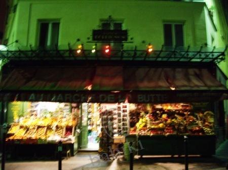 Там продают овощи и фрукты, а у входа – стойка с открытками, среди которых и открытки со сценами из «Le Fabuleux Destin d`Amelie Poulain» (что-то типа «Волшебная судьба Амели Пулен») – именно так называется фильм в оригинале. Мы, конечно, этот магазинчик нашли, но фотограф был не в себе, поэтому фото вышло смазанным (всего вероятней, рука дрогнула, пока с камерой, зонтом и фотоаппаратом разбиралась).