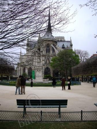 Но торжественность музыки и величественность сводов собора (подумать только, это же Нотр Дам!) и осознание того, что музыка была написана в честь воскресения Иисуса Христа (хотя мне казалось, что она больше соответствует сцене распятия и смерти), всё таки вызывали желание дослушать до конца. За 45 минут ребёнок совершенно измучился, поэтому я пообещала ей погулять в соседнем парке. Около выхода из собора купили на память медаль с изображением Нотр Дам, обошли сам собор, пройдя мимо апсиды, завернули в сквер, который тянется вдоль набережной, по пути встретили детскую площадку. И тут зазвонили колокола.