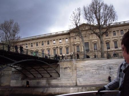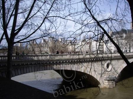 На этом мосту «показывали» несколько замечательных концертных программ: во-первых, джаз (народ стоял целыми семьями, детишки плясали под музыку), честно говоря, уходить не хотелось. Тут же на углу какой-то чудик (подозреваю, что не совсем нормальный, но, может, у него имидж такой) передразнивал все прохожих (типа пантомимы). На противоположной стороне моста музыкант играл очень французские мелодии на гармошке, рядом с ним стояли его вещи, а из сумки выглядывала игрушечная обезьянка. Мы потратили на осмотр всего этого целый час. Да, это был совсем не тот Париж.