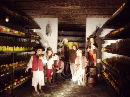 Лиза с огромным удовольствием там побегала (впрочем, не она одна). На наше счастье, погода была не очень (два градуса тепла и дождь), обычно, говорят, в замке не протолкнуться от посетителей. Так что и у плохой погоды бывают свои плюсы. Рядом с лабиринтом расположен подвал, который раньше служил хранилищем для фруктов, а теперь там обитает семья Мальчика-с-пальчик. Только мы, как ни старались, самого малыша не разглядели, а братья его все на месте.