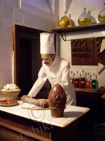 На витрине было много разных наборов к Пасхе, а также шоколадные конфеты всех мастей и форм (цена от 6 с чем-то евро за 100 грамм). Мы уже решили купить на пробу шоколадные ракушки, а также что-то типа миниатюрных тарелочек с набором из орехов – грецкий, миндаль, фисташки. Но несколько пожилых мадам впереди нас, похоже, решили затовариться по полной программе, поэтому дочь сказала, что с неё вполне хватит шоколадных яиц, которых осталось ещё немного в одном из карманов. Да, хотя сам процесс приготовления шоколада уже на то время закончился, в магазине работал один из кондитеров, он упаковывал в разнообразные цветные коробочки уже готовые шоколадные наборы.