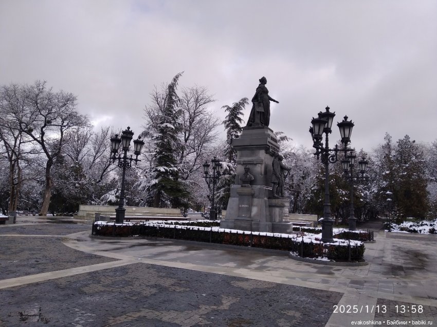 У нас почти нет снега. Немножко, совсем чуть-чуть выпало накануне Старого Нового года. Домой возвращалась через парк, вот тоже по дороге сделала фото