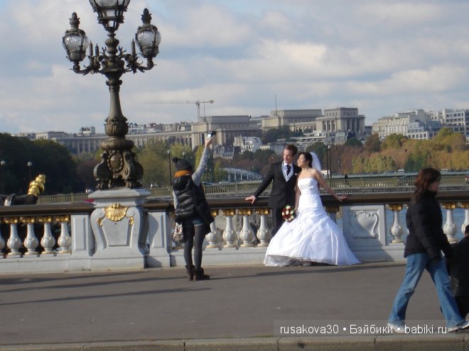 Вот фото свадьбы в Париже. Посмотрите во что одеты люди около невесты и жениха.