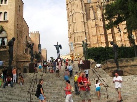 Если идти по узенькой улочке – лестнице между собором и Королевским дворцом, то вы увидите живые скульптуры и множество уличных музыкантов, которых так много в Барселоне на Рамбле, но нет в Пальме. На этой же лестнице, а также вдоль всей стены, выходящей на море, стоят скульптуры – выставка произведений Игоря Митораха.